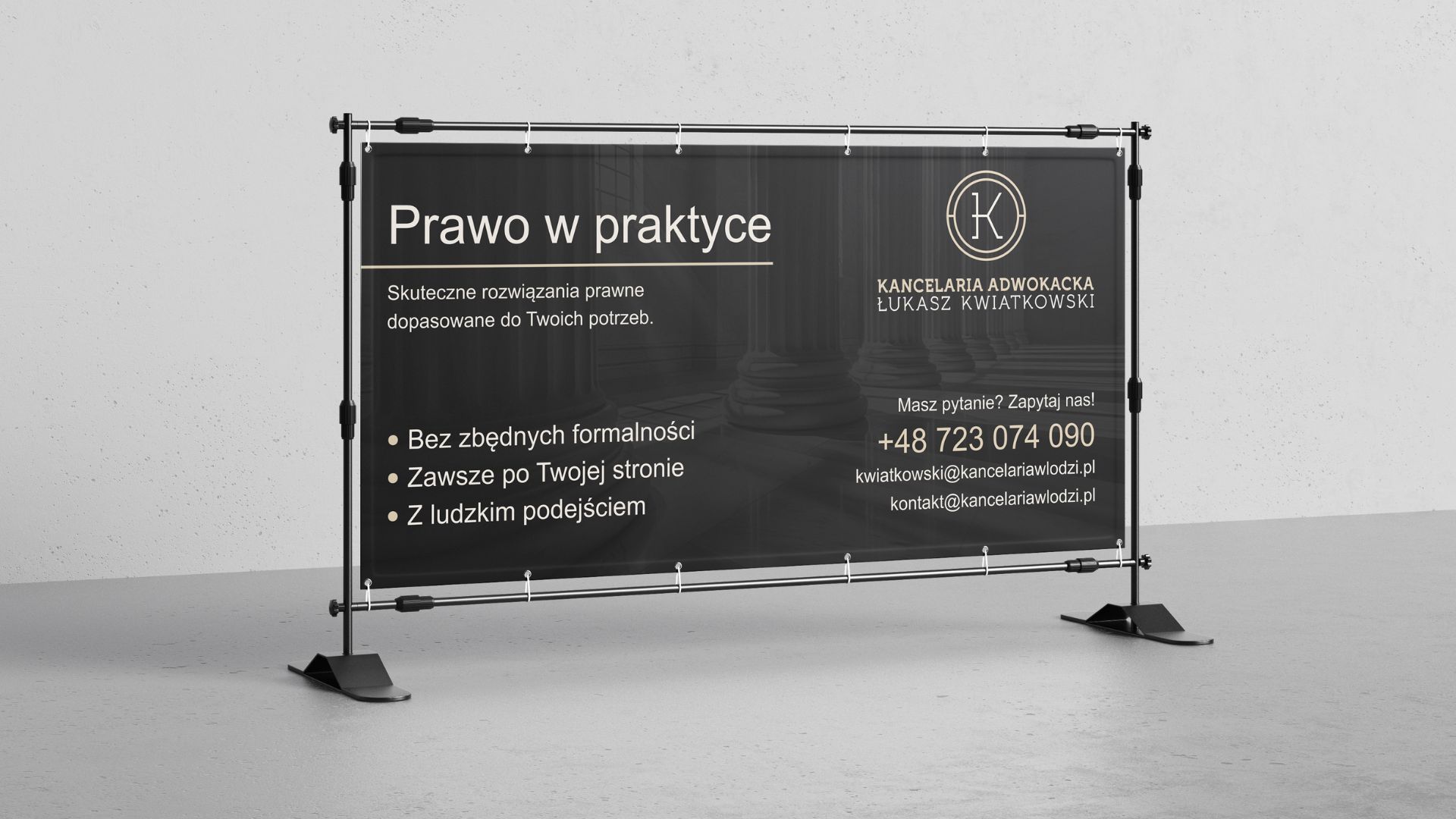 Projektujemy bannery i roll-upy, które są widoczne z daleka, czytelne z bliska i dopasowane do powierzchni, na której będą prezentowane.