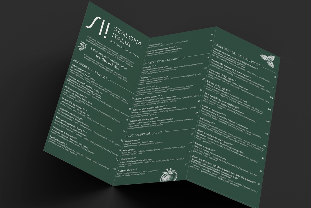 Projektujemy spójne graficznie karty dań, ulotki, plakaty i inne materiały promocyjne.